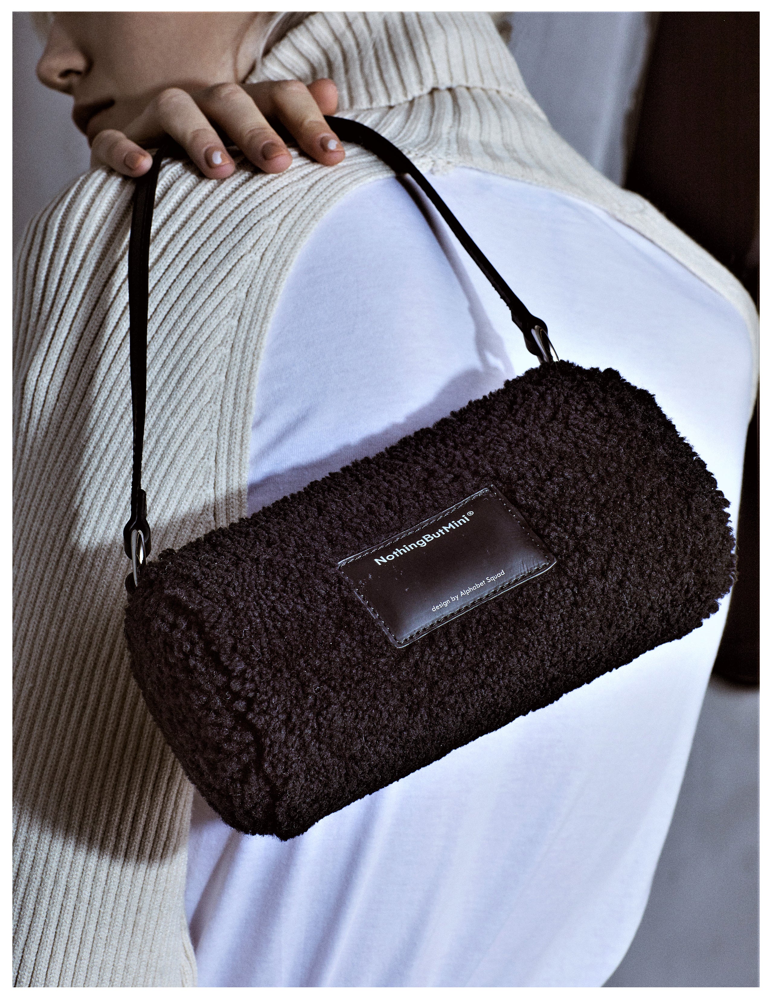 Sheep Fur Bowling Handbag (Black)